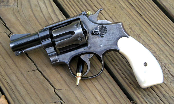 Just picked this up today, interesting old S&W. From what I can gather it is an 1899 Target Model that shipped from the factory originally with a 6 in. bbl. At some point in it's history, this was chopped to three inches & a new sight added. The grips are real Mother of Pearl. Lockup is tight & there is no endshake. The finish is worn, but that is fixable. Since the collectability is ruined, should I leave it as is or park it? I have another set of factory grips I will modify to fit the round butt.