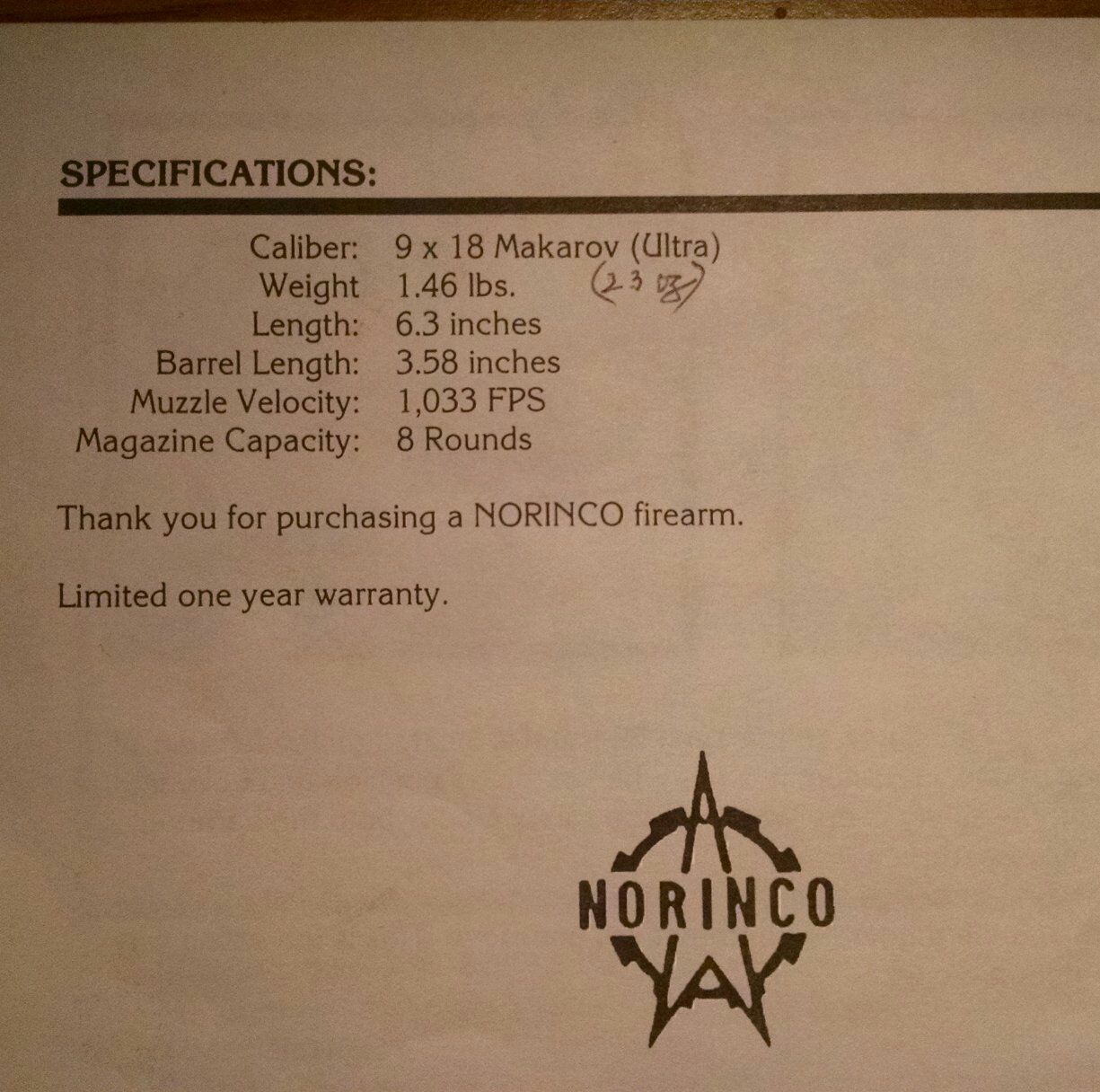 Just bought my Norinco T59 Makarov, and found interesting reading in the manual that came with it. It says the gun is 9×18 Ultra. The key word being Ultra. I know of the Walther Ultra round developed for more pressure, but have never seen a 9×18 Ultra. For now assuming one of those things that occur when translating. The imprint on the gun does not say Ultra.