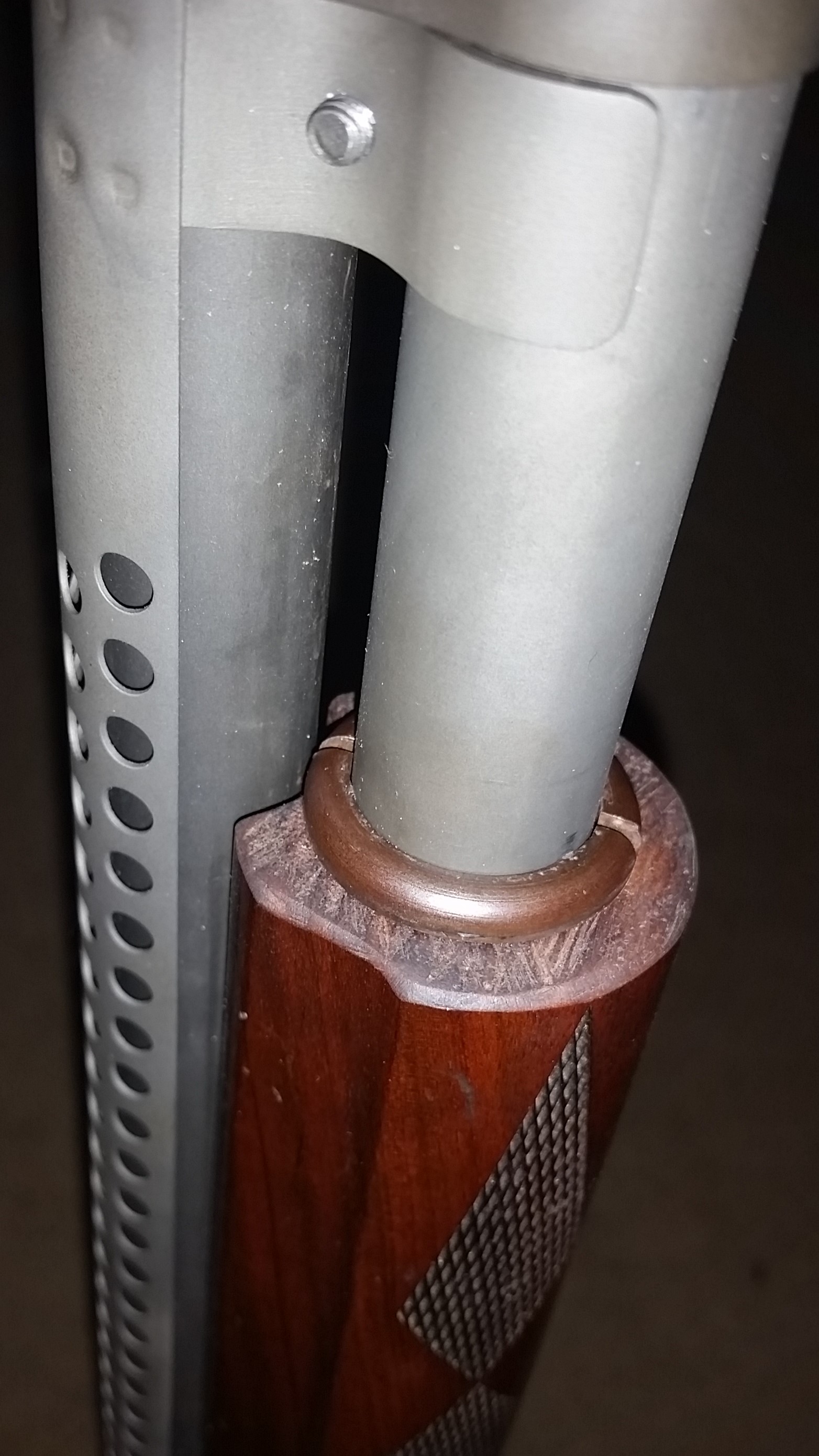 The buttstock went on with little to no effort, the forend required inletting for the double action bars (Flite King was single bar). Also, I had to cut around 2" off the muzzle end of the forearm, as the action tube is much shorter on the M5. I cut mine near-flush to preserve the checkering, so I ended up using the castle nut that came with the forend. Cut an extra 1/4" if you plan on using the M5 nut.