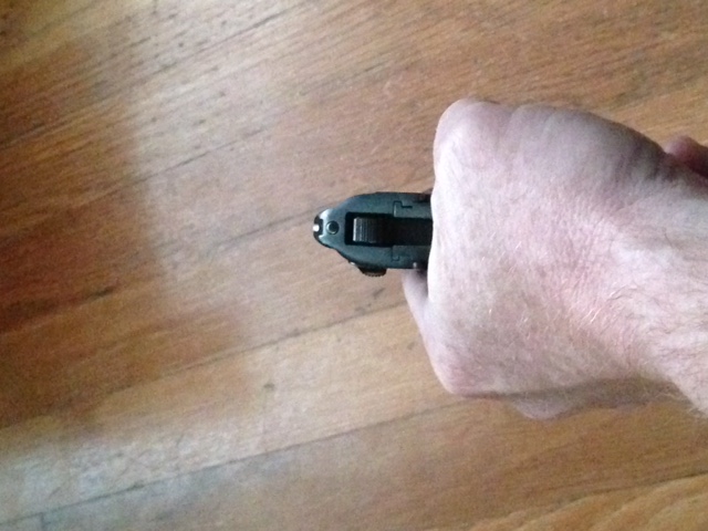I imagine in 1930 it may have been easier to swing by a local jeweler, lay your pistol on the counter and ask him about silvering the front sight. Probably not a smooth move today without a little bit of spare time and bail money on hand. But, I found it easy enough to use a very shiny piece of aluminum foil (what I used) or mylar (or a large flake of craft store glitter might even do better) and a dot of epoxy to affix it to the front sight on my P-64, and not only was the result a much easier sight to find in normal to low light, but it was more durable through firing and cleaning than the paint dot I always used was. I will be following up now with a few of my other plain iron sight pistols.