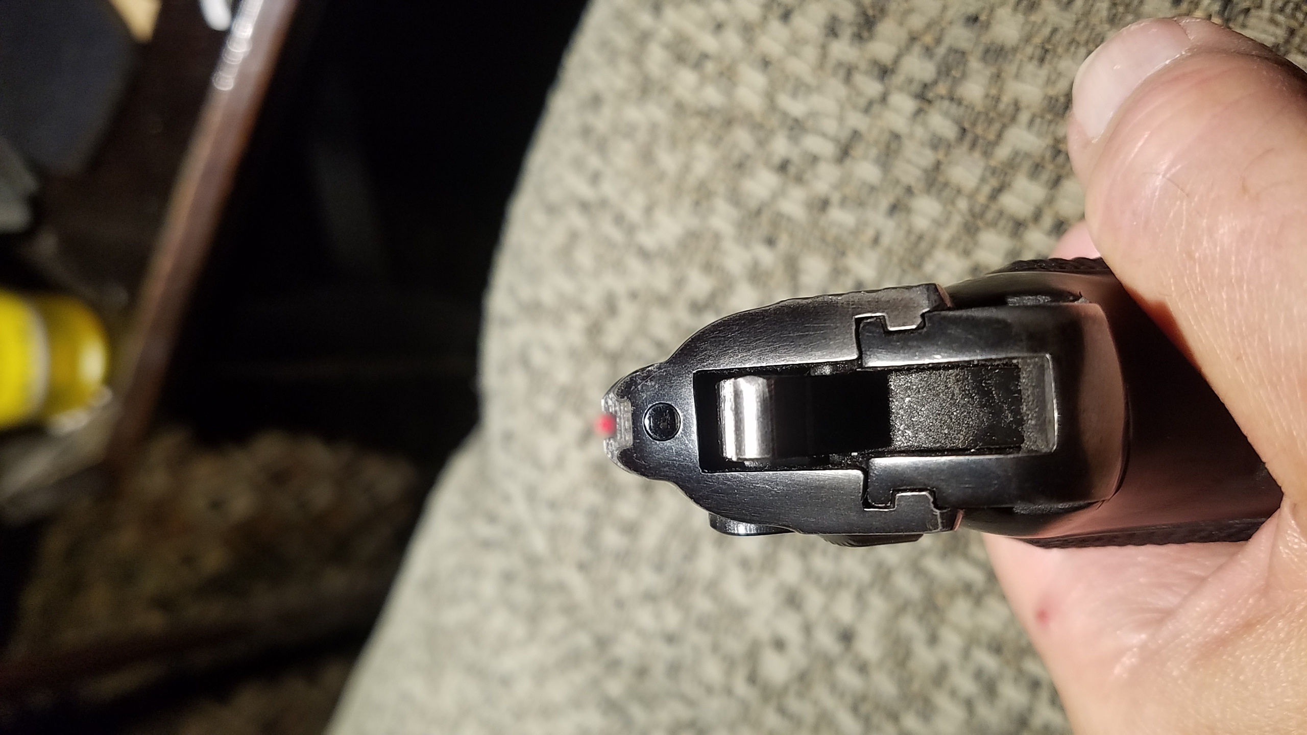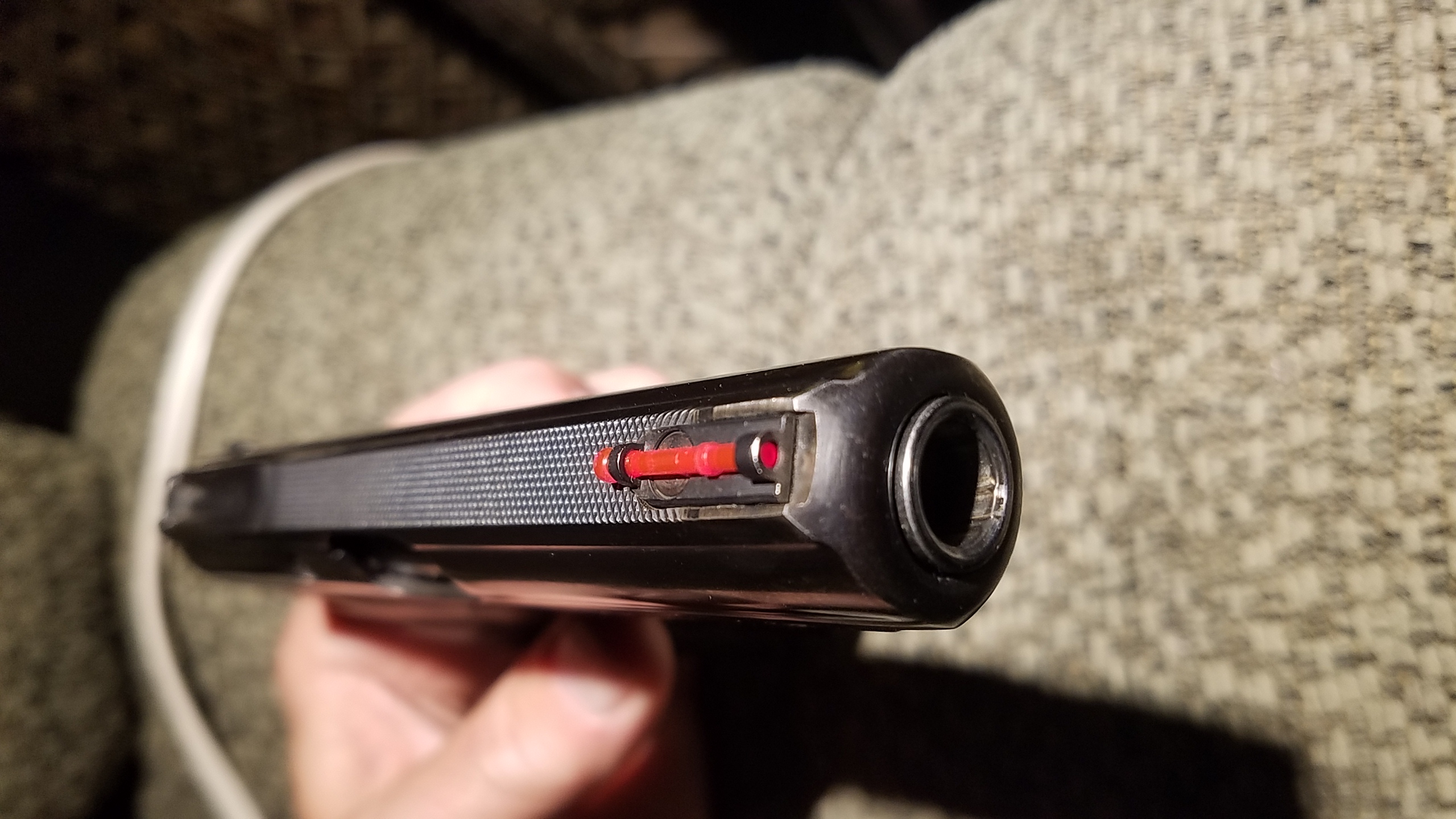 Thanks. The S&W 66 and 19 live by the bed and I've never had a problem with them. The BG has a pretty thin blade. The addition might be better accomplished with a piece of gold rod slit most of the way lengthwise the width of the blade and then just slip it on parallel to the barrel, solid end pointing toward the shooter, and epoxy it. The only problem my wife has with it is shooting low consistently. Gold bead might help with her sight picture.