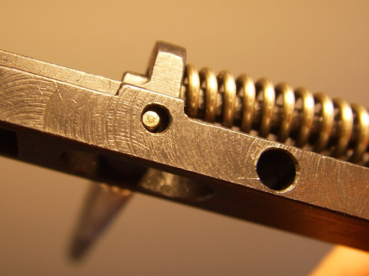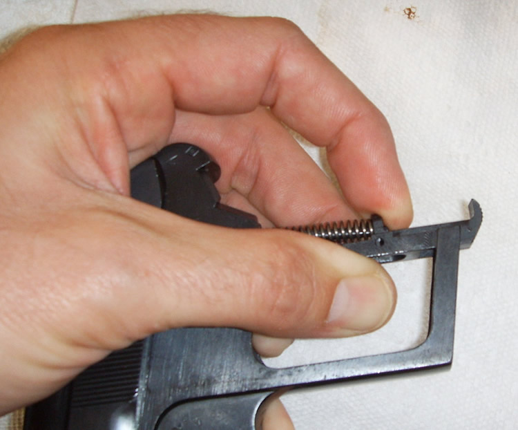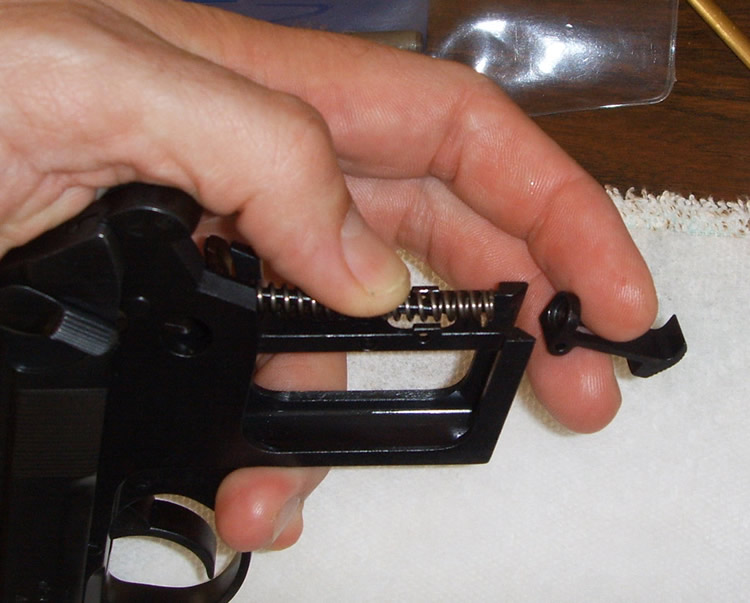 8. Wiggle the mag release until it comes out ... there is a little tension on the mainspring, but not too much.