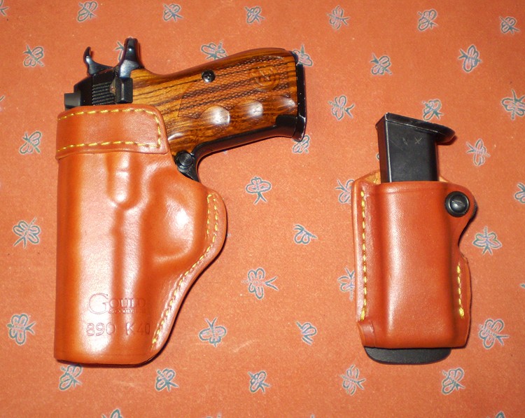 Also bought a pair of EG mags for $40, again off GB, and ordered the Falco IWB with thumb break and double mag holders in mahogony. (see links below)