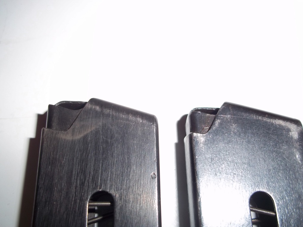 That is a good question. Early mags have a larger cut out for the slide stop. The latter mags have approx. half the cut out.