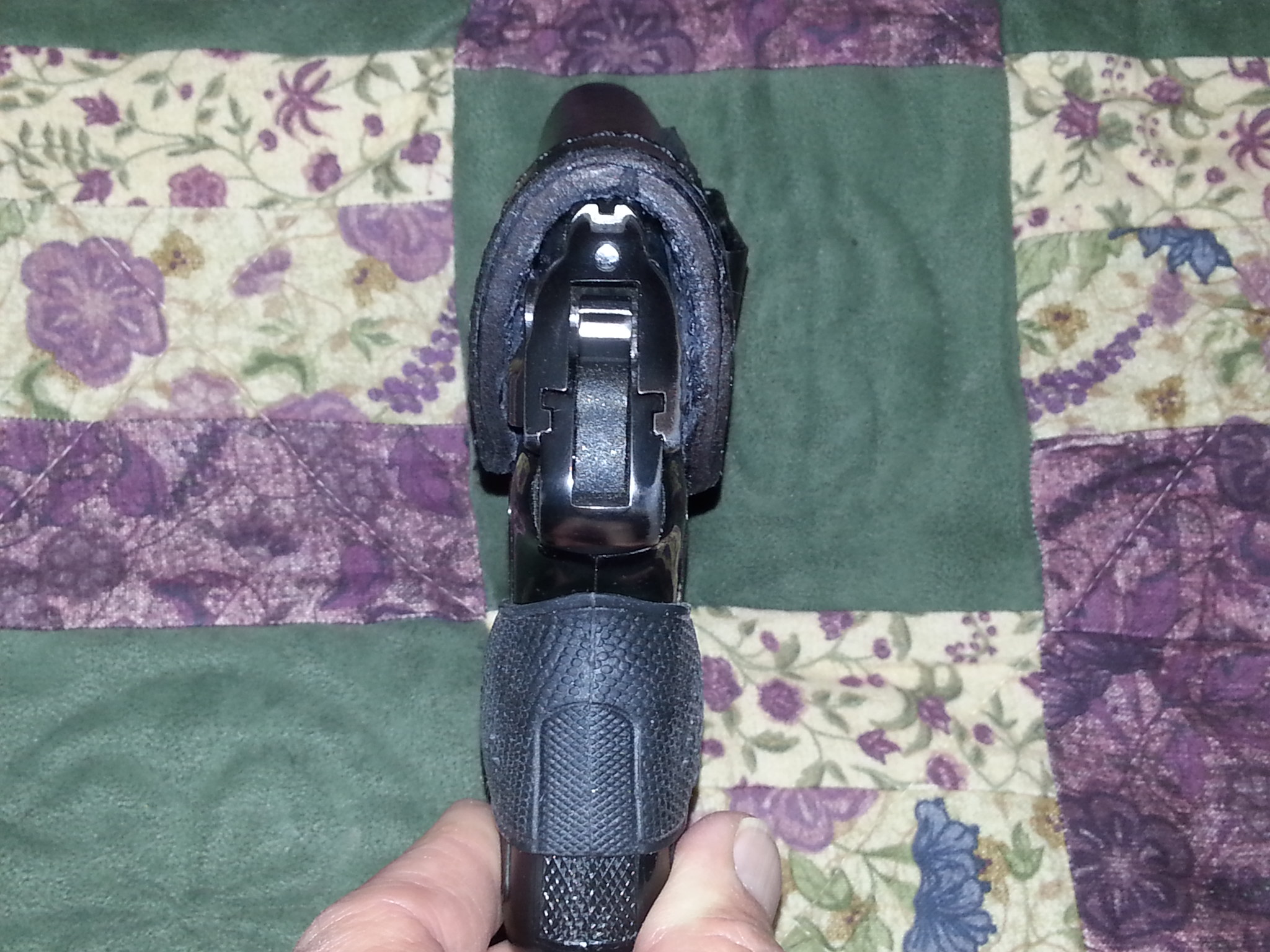 The grip band is by Pachmyer and has a palm swell on both sides which I find fills my hand rather nicely being that the grip is sooo narrow. And it may help with recoil too.