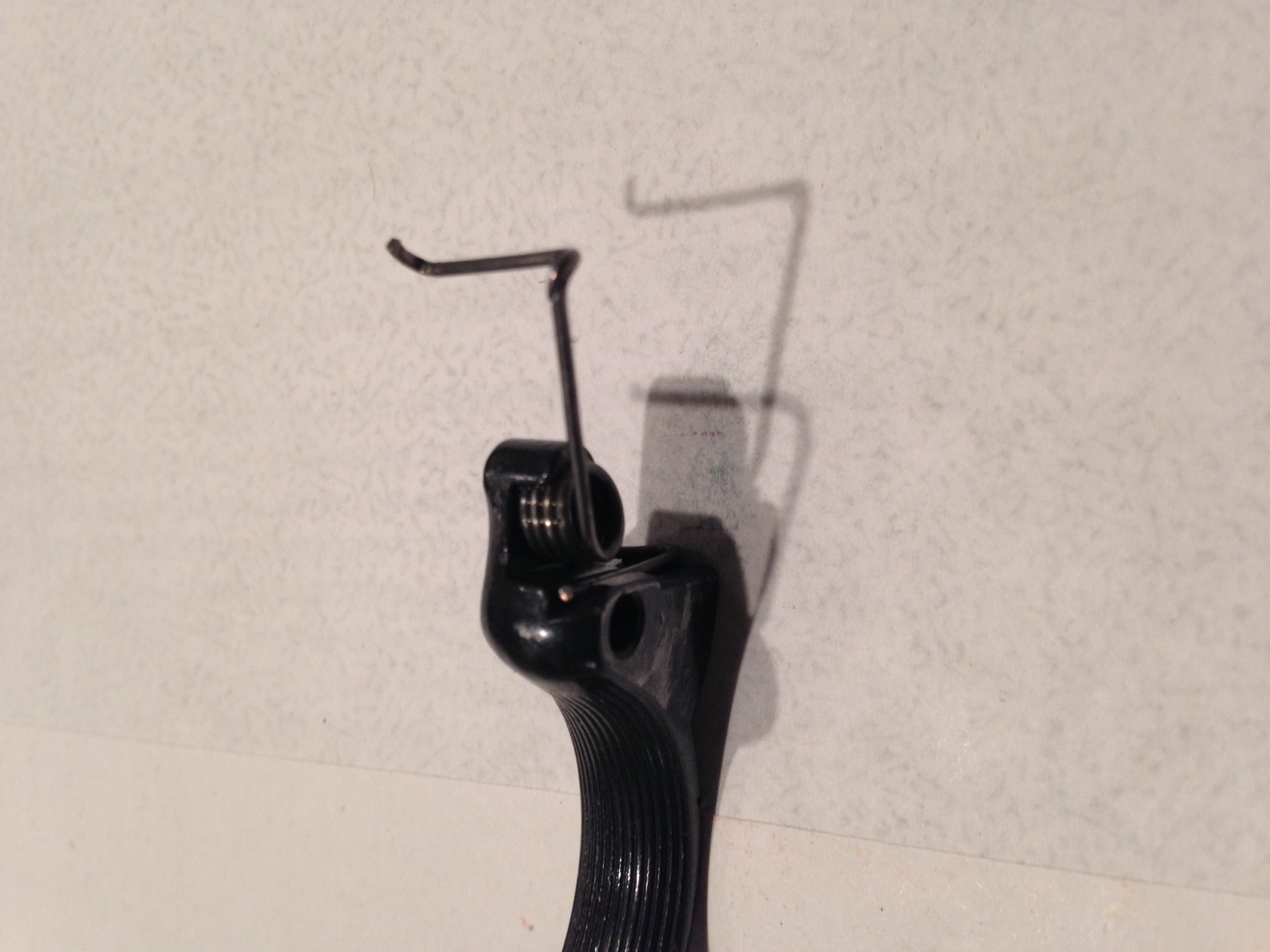 Ok Gents, I'm back at it. Trigger and spring out and issue in hand. TS has fatigue crack at first 90 deg bend. Pic gives some idea with the discontinuity in the elbow. No strength left and will fall off if I just push on it a little.