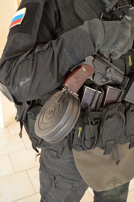 Somebody in Russia welded PPSh drum mag and Makarov mag together to make a drum for Mak! The capacity is 80 rounds. They also attached a keychain ring to the mag release hook to make it easier (or possible at all) to detach the drum.