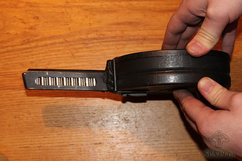 Somebody in Russia welded PPSh drum mag and Makarov mag together to make a drum for Mak! The capacity is 80 rounds. They also attached a keychain ring to the mag release hook to make it easier (or possible at all) to detach the drum.