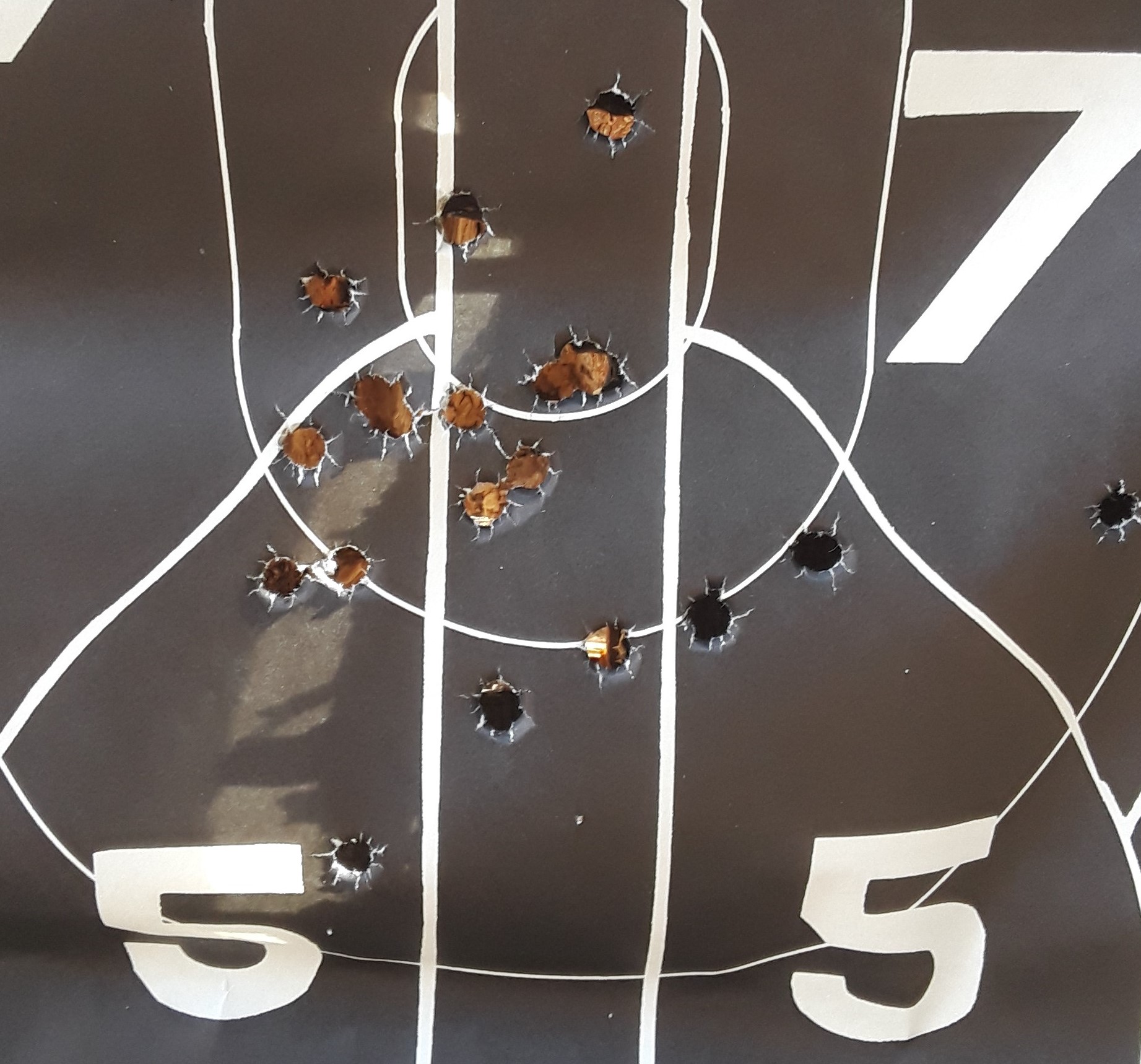 It shoots better than I can hold it. This target is at 10 yards, two handed grip, elbows resting on the shooting bench.