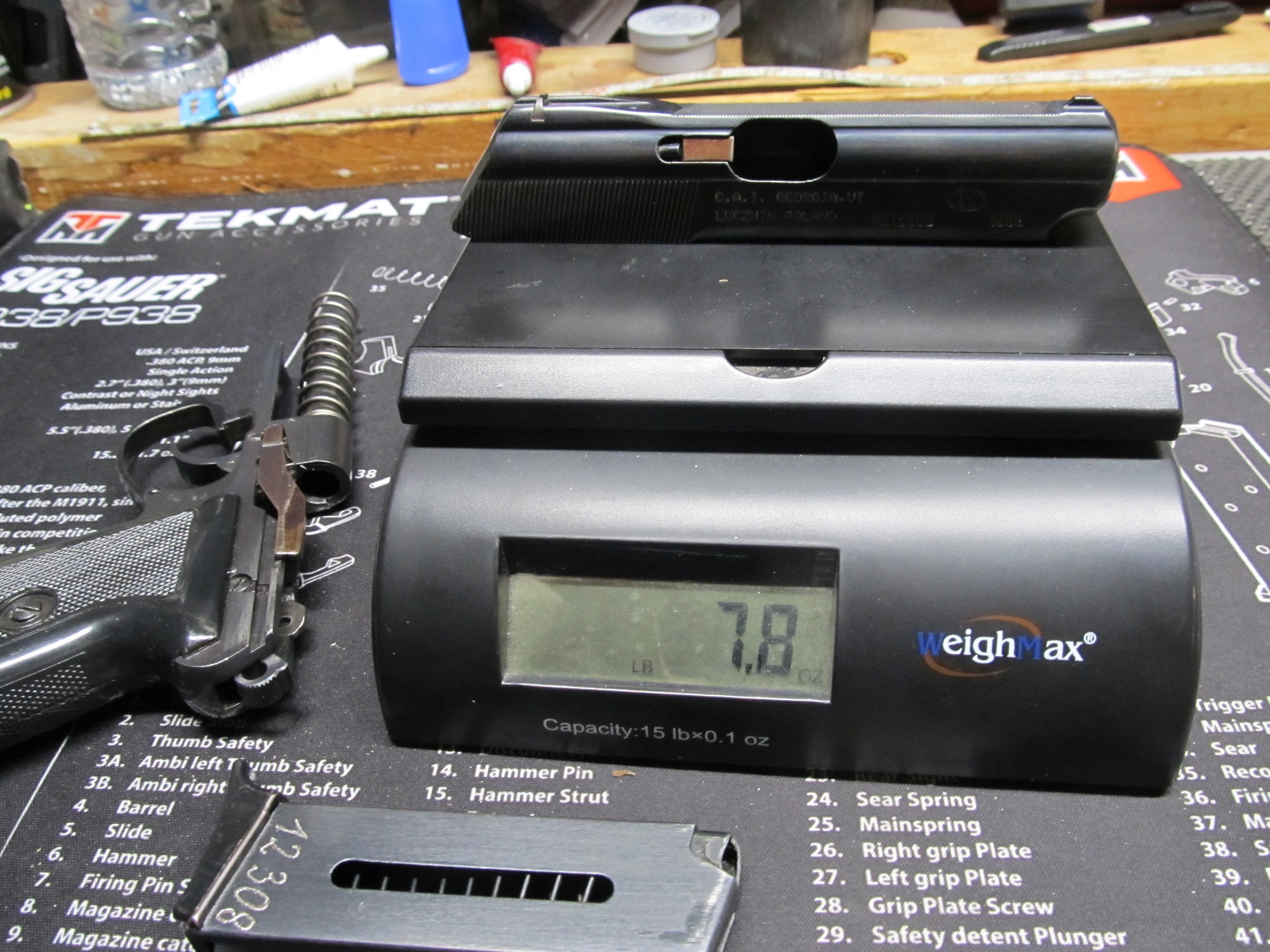 I dont have a scale that will weigh the P64 slide, it too heavy for any of my reloading scales.
