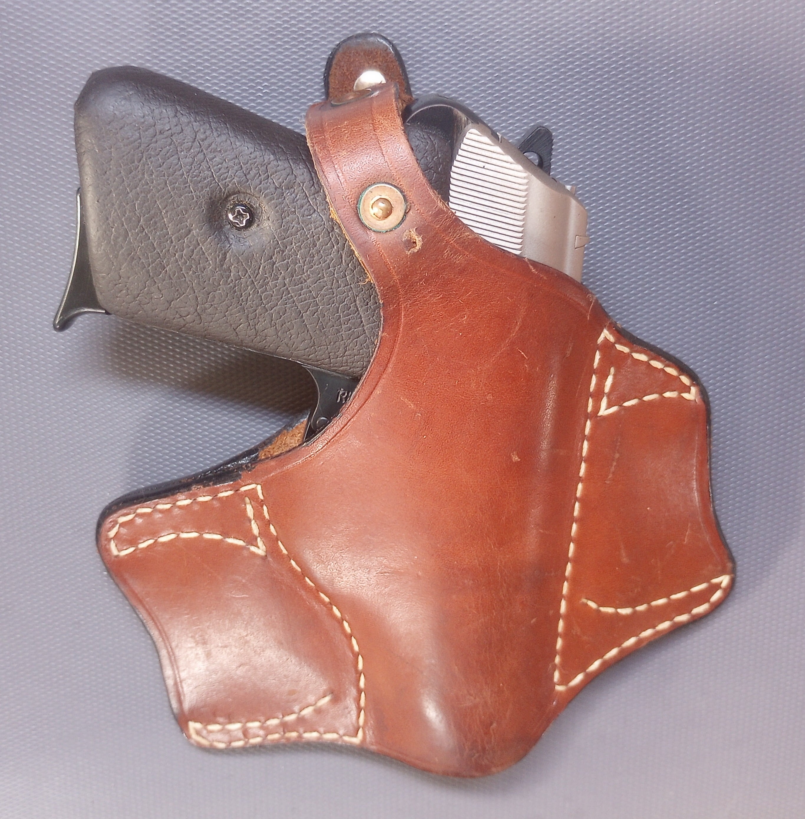 I had to extend the strap on this PPK OWB holster. It turned out OK but because I am only a beginner leather worker I punched a hole in the wrong place that shows up in the finished product and the entire thumb break strap got a little beat up around the edges over time.