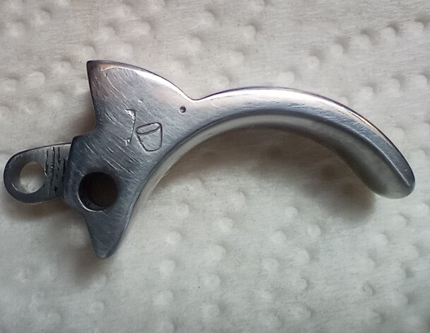 Prepping one of my triggers to send out to have Titanium Nitride coating applied and noticed this mark. Unlike nearly every other stamping other than the serial numbers, date, caliber 9mm, and circle 11 this one is clear and very high definition. None of the other P64 triggers I have had in my hands has ever had anything like this. There is another less-defined proof mark next to it and a hardness test dot nearby too. I wanted to keep this mark intact because it looks neat so I didn't polish the others out here.